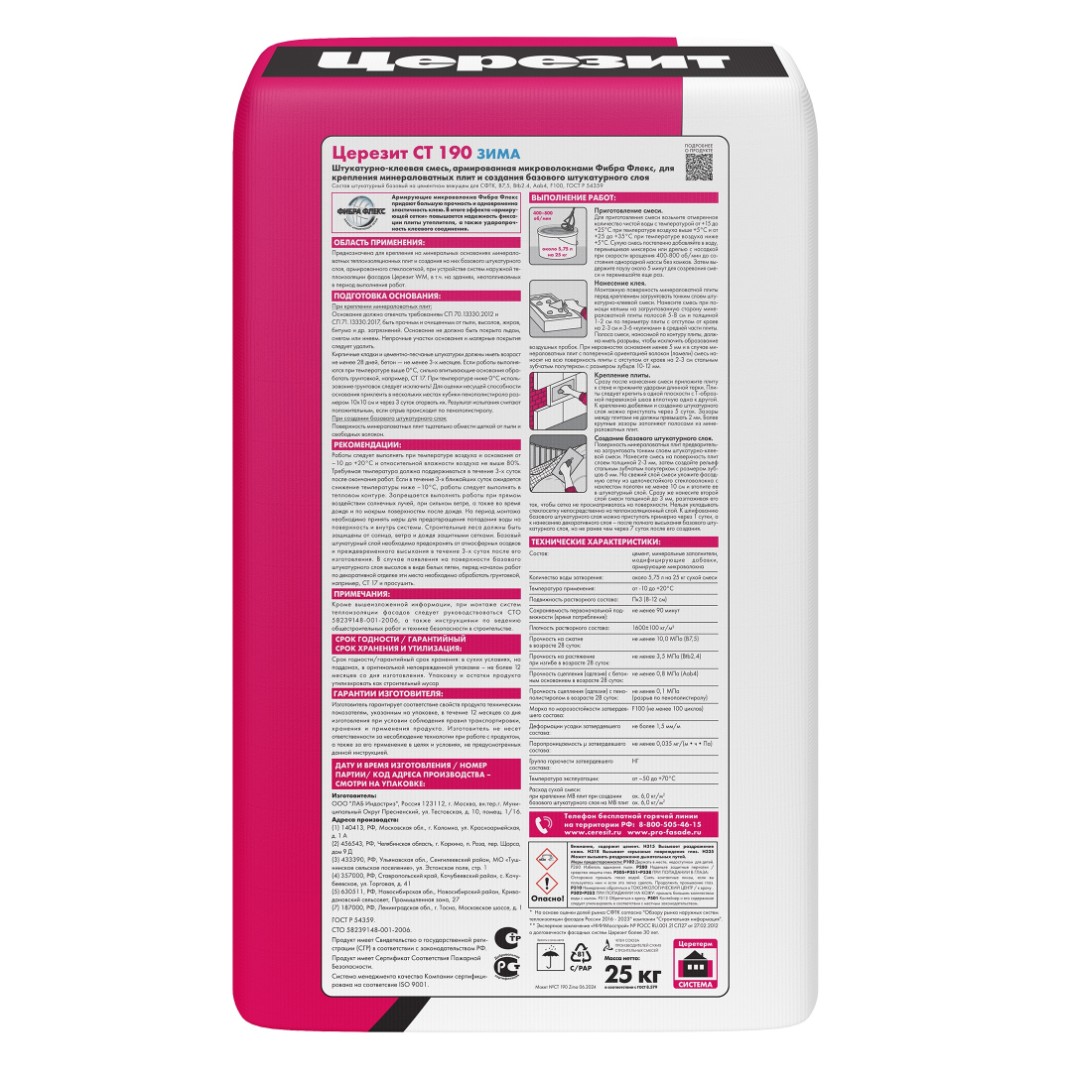 Штукатурно-клеевая смесь Ceresit СТ 190 для МВ плит Зима (25 кг) в Москве