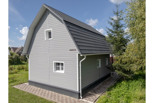 - В отличие от облицовки фасада деревом, металлический сайдинг «ЭкоБрус GL» прост в монтаже и не требует дополнительного послемонтажного ухода.