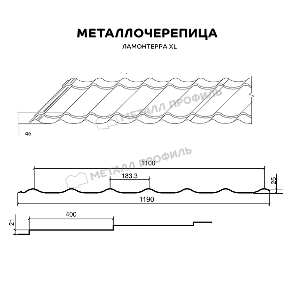 Металлочерепица МП Ламонтерра-XL NormanMP (ПЭ-01-2004-0.5)